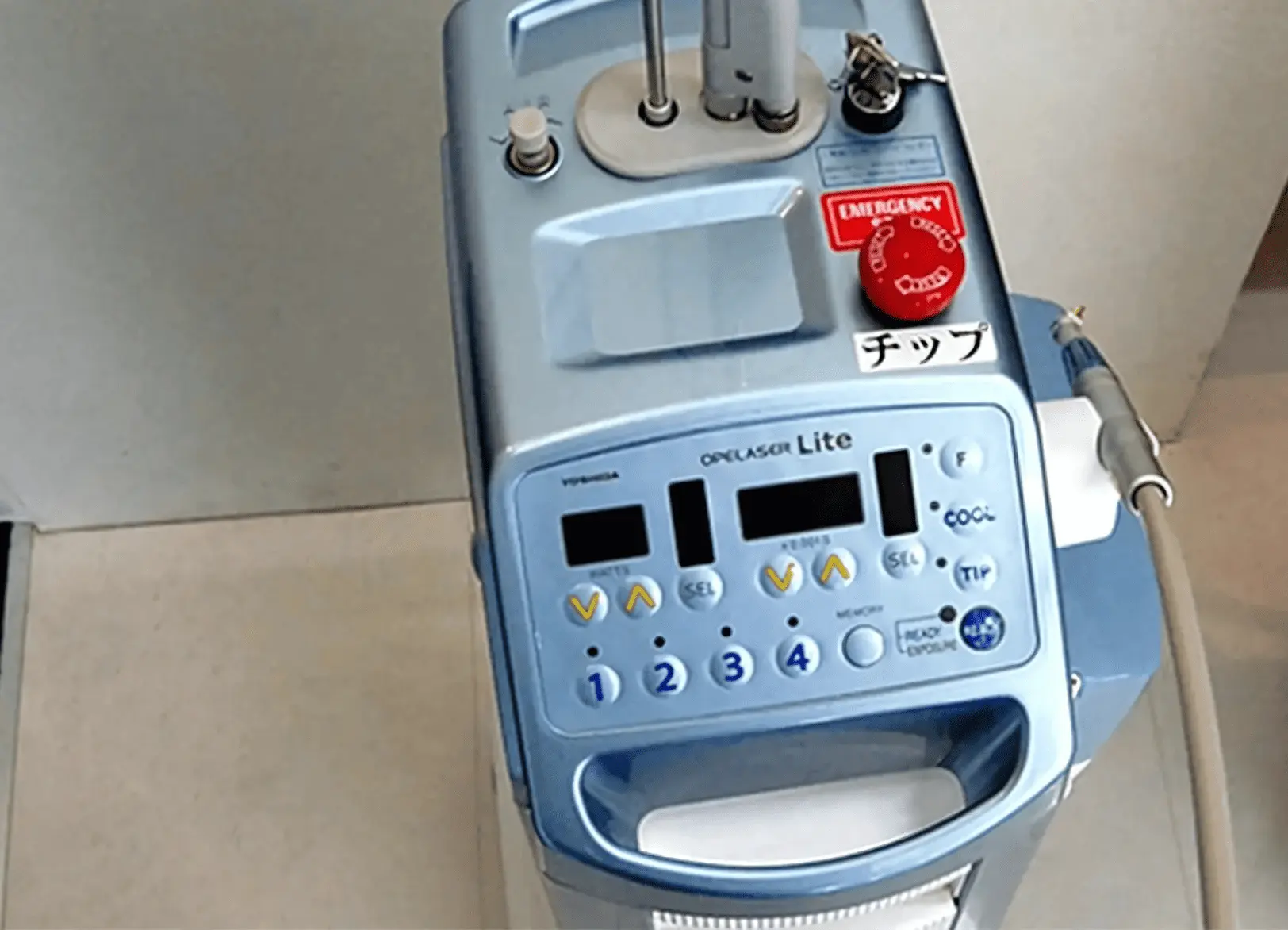 レーザー機器です。歯ぐきの処置や口内炎など、さまざまな治療で活用されることがあります。