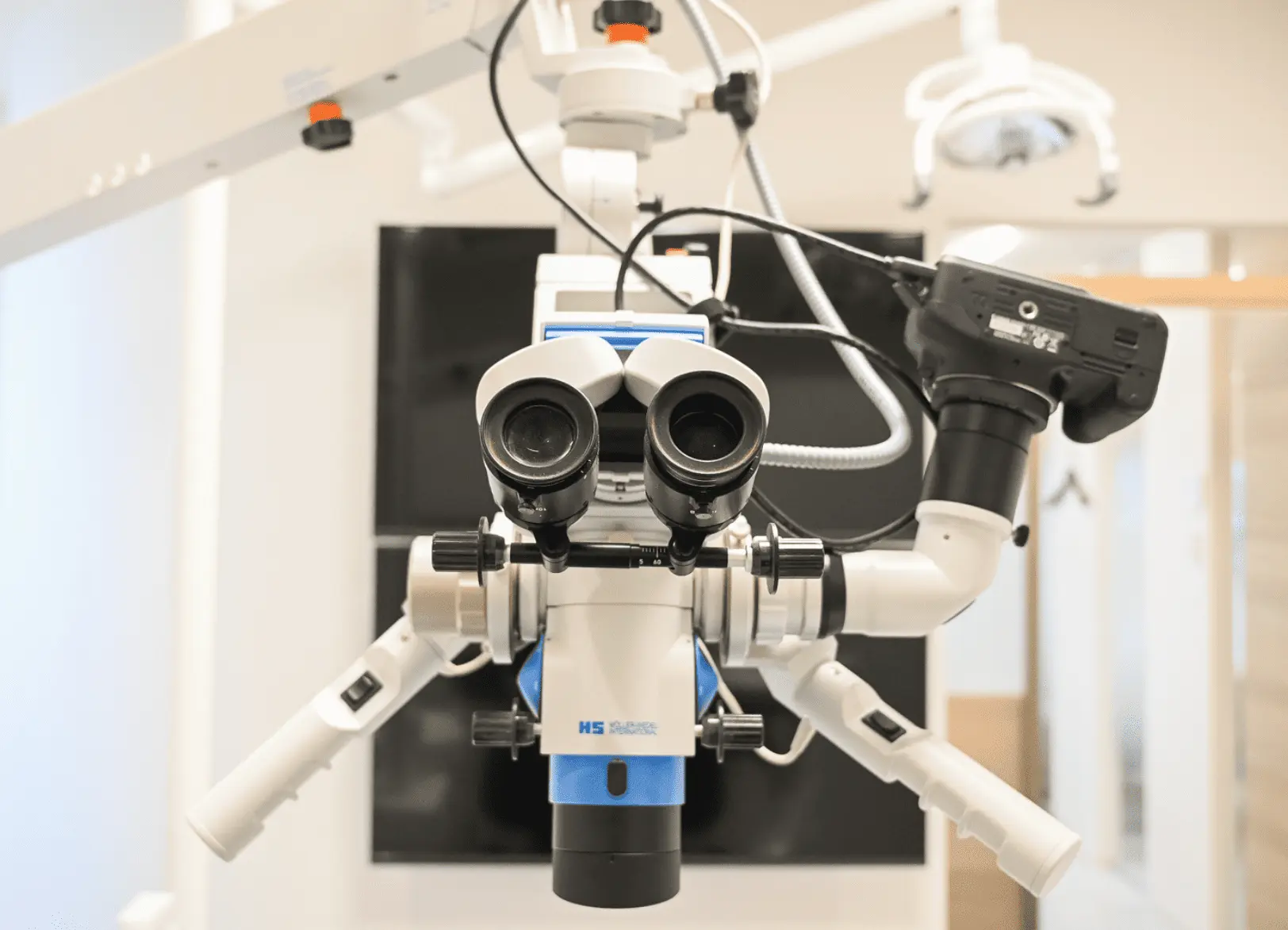 (歯科用顕微鏡)マイクロスコープは患部を拡大して観察できる歯科用顕微鏡です。細部まで把握でき、むし歯や根管治療で使用し、処置の記録や説明にも活用します。