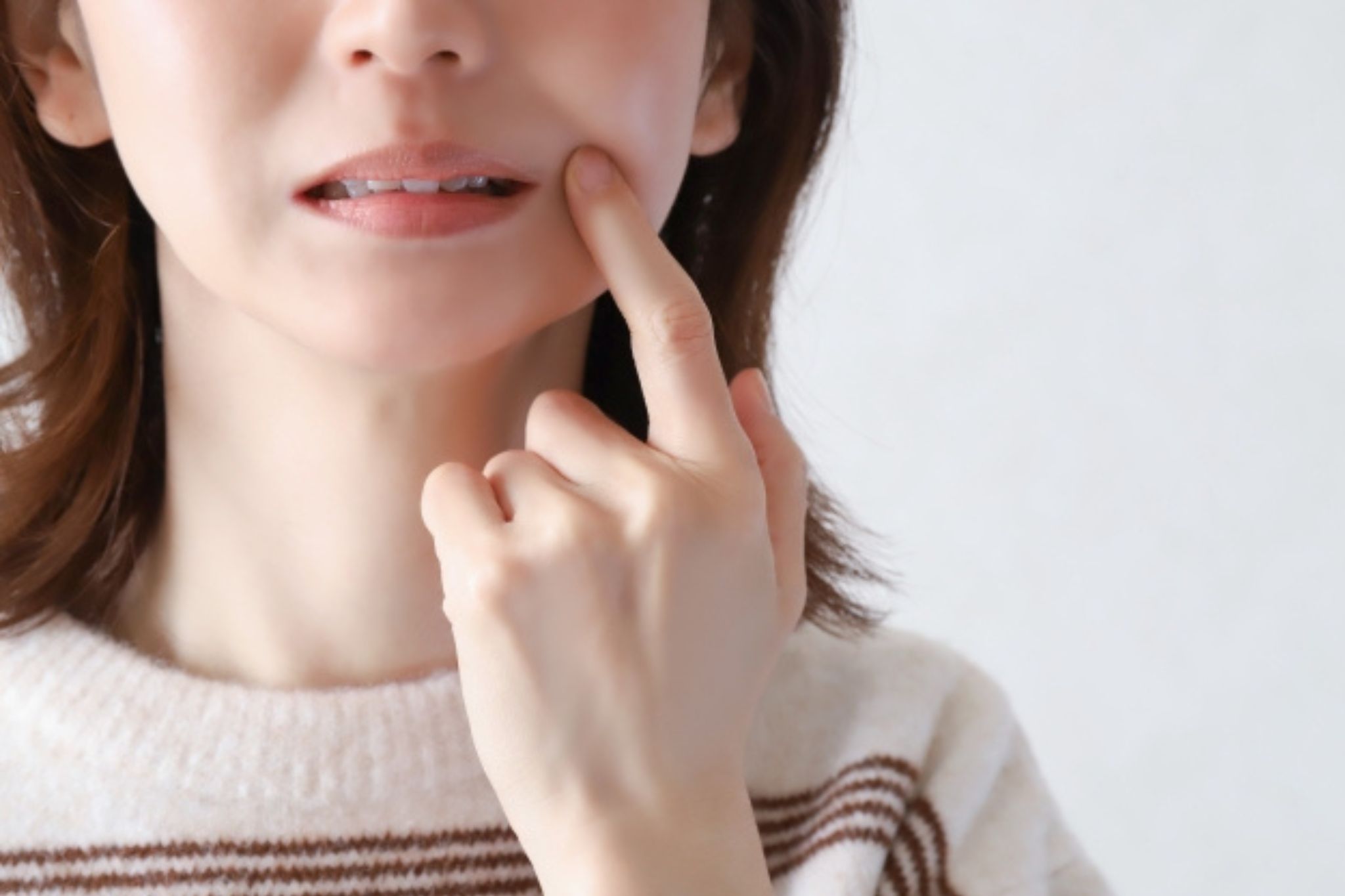 歯ぐきの炎症が関係している場合があります。噛むと違和感がある・片側で噛む癖がある